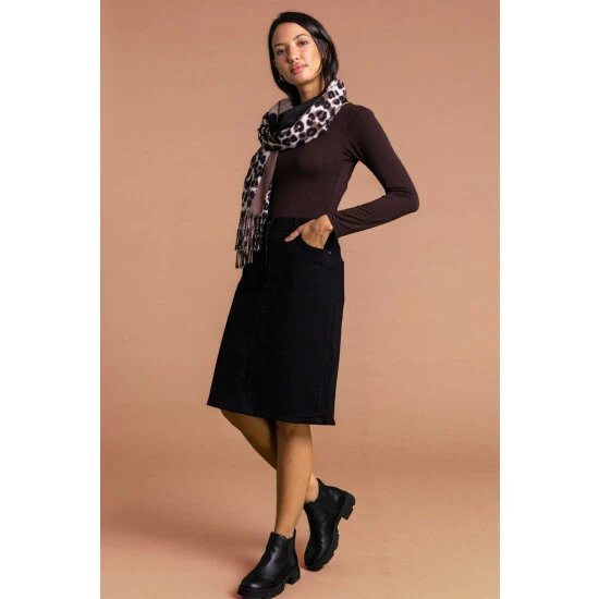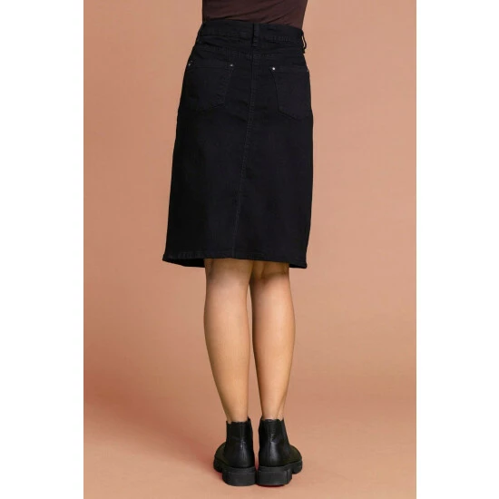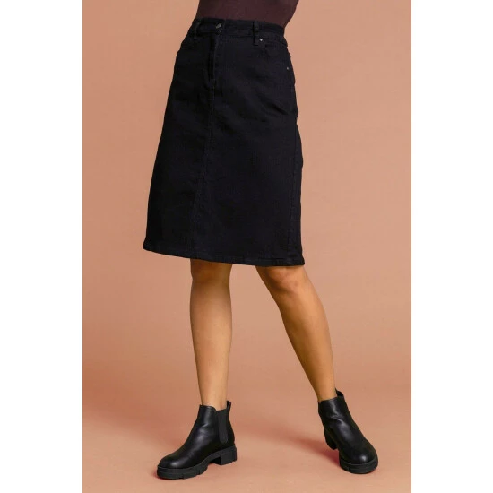 A Line Stretch Denim Skirt from Roman. Look cool and chic all day long with our versatile bleach wash skirt, taking you from dusk til dawn. Made from a stretch woven denim, this A-line skirt is fastened with a front zip and stud featuring cute front pocket details. Pair with your everyday wardrobe staples or wear out on the town with heels and statement jewellery for a casual take on an evening out look.