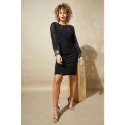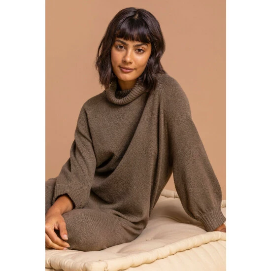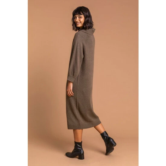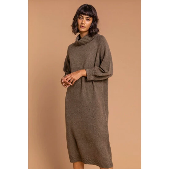 Roll Neck Knitted Midi Dress from Roman. Update your casual collection with this comfortable Winter staple, guranteed to keep you cosy all season long. Featuring a warm roll neck, this chunky knit jumper dress has a classic rib detail at the cuffs, collar and midi length hemline. The dress features fun 3/4 length sleeves and is cut in a relaxed shape, providing you a loose and comfortable fit. Pair with thick tights, chunky boots and a biker jacket or an on trend, off duty look!